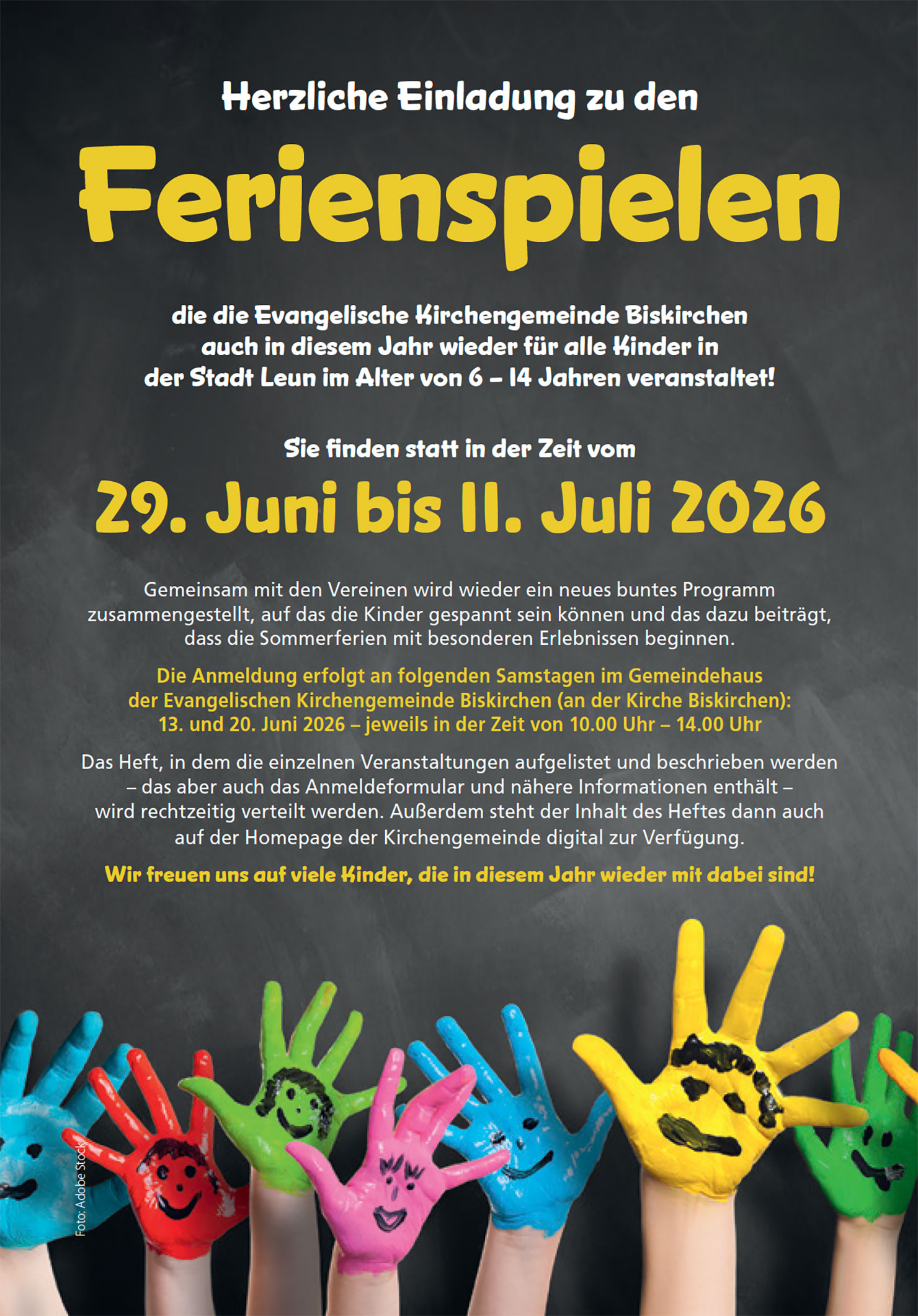 Ferien­spiele der Evan­ge­lis­chen Kirchenge­meinde Biskirchen für die Kinder in der Stadt Leun